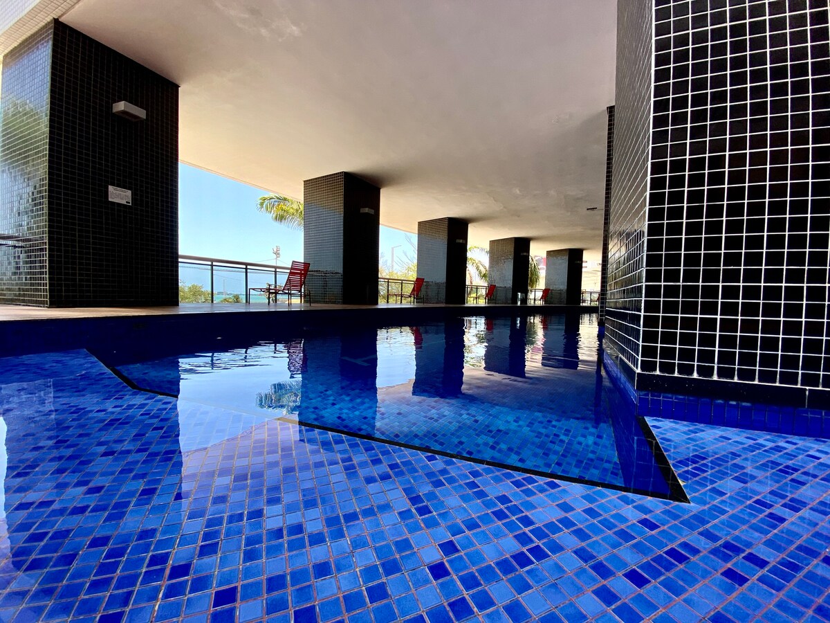 Apto estilo studio (cômodos integrados) c/ vista mar, ETT próprio, 1 cama de casal e 2 de solteiro, aquecedor de água, rede wifi, Tv smart 55”, rede de proteção na sacada, secador de cabelo, microondas, airfryer, cafeteira, máquina de lavar roupas, etc. Nas áreas comuns temos academia, mercadinho e piscina com uma vista espetacular. Próximo de pontos turísticos ( Ponte dos Ingleses, Mercado Central, etc), supermercados, farmácias, bares e restaurantes. A 100m da futura Casa Cor.