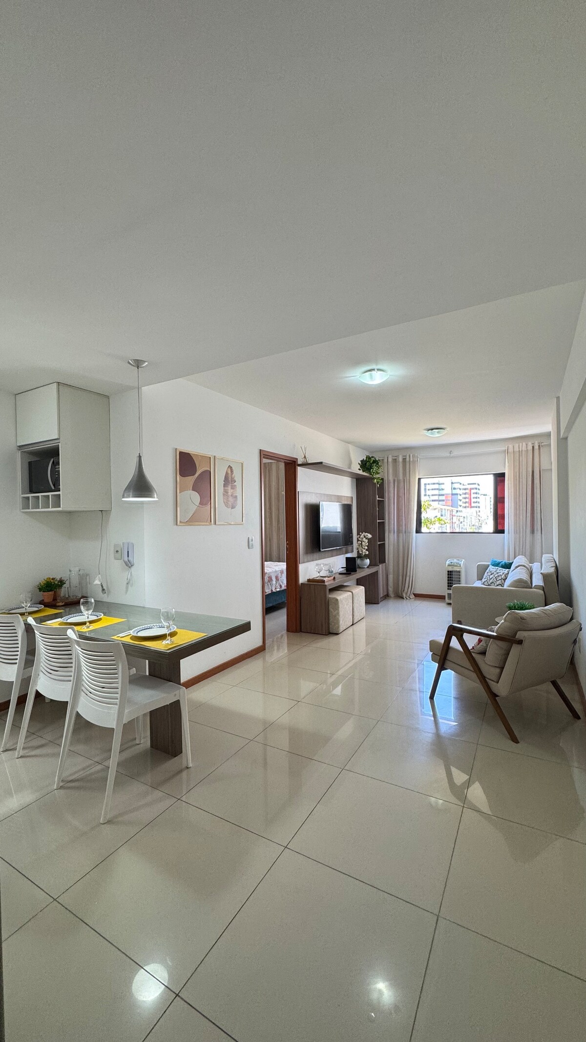 Apartamento quarto e sala completamente equipado! Cozinha com todos os utensílios, cooktop, forno, microondas, Netflix no quarto e na sala, internet 15Mb exclusiva, ar condicionado 11mb no quarto, ventilador na sala. Áreas comuns dispõe de piscina com borda infinita (na cobertura), academia, churrasqueiras. Tudo isso a 30 metros da Orla mais linda do país, considerada uma das mais lindas do MUNDO!