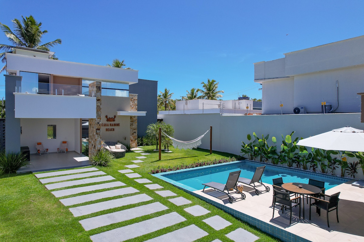 푸른 하늘, 소나무 태양, 코코넛 숲, 따뜻한 물이 흐르는 천연 수영장 등 천국을 상상해보세요... 상상하셨나요? 800m ², 바베큐, 해먹, 바닷바람, 일년 내내 여름의 맛이 있는 정원에 이 모든 것을 더하세요. 가족과 친구들과 함께 브라질에서 가장 아름다운 10번 연속 선출된 해변에서 인생 최고의 경험을 즐기세요. 5개의 욕실, 거실, 와이파이, 스마트 TV가 통합된 주방을 갖춘 저희 숙소는 휴식과 여가를 즐길 수 있는 완벽한 장소입니다.