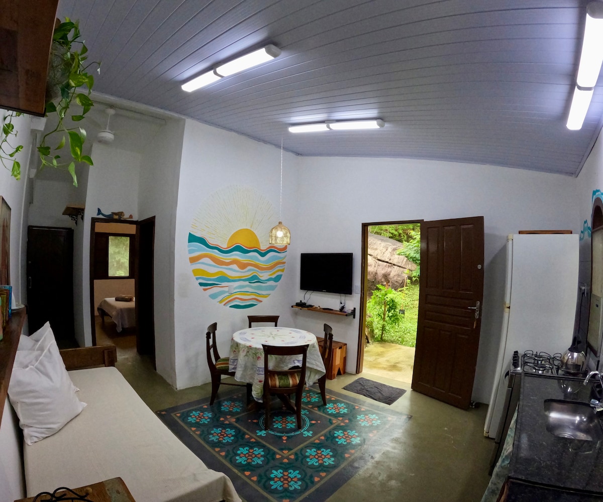 외부는 작지만, 내부는 아늑함이 가득합니다! 아우레는 커플이나 편안함과 단순함을 찾는 사람들에게 적합합니다. 에어컨, 완비된 주방, 야외 바비큐 그릴, 해먹 공간, 커뮤니티 정원, 낚시 호수, 바다 근처에서 조용한 하루를 보내는 데 필요한 모든 것을 갖추고 있습니다. 해변까지 쉽게 이동할 수 있으며, 차로 2분 거리에 있으며, 가벼운 분위기로 재충전하기에 이상적입니다. 아우레는 대서양 숲으로 둘러싸인 소박한 주택으로 이루어진 빌라 이카투의 주택 중 하나입니다.