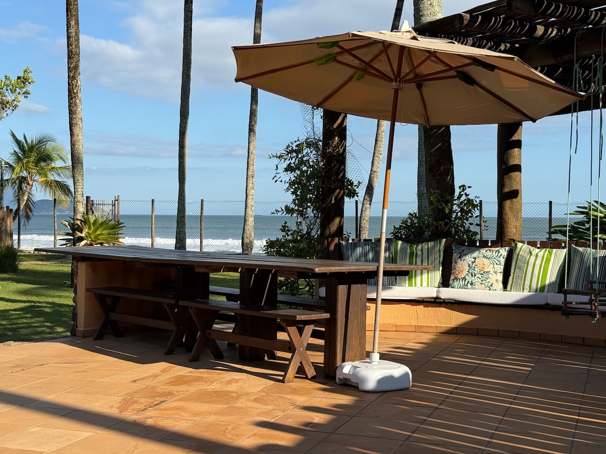 A apenas 100 m da praia, casa espaçosa, charmosa e super equipada, perfeita para famílias com crianças, idosos e pets. 4 dormitórios (com suíte no térreo, ideal para idosos), a casa acomoda até 10 pessoas. Com lareira, enorme jardim gramado e até casa na árvore. Cozinha completa, ambientes bem mobiliados e ar-condicionado em todos os ambientes. A caseira (ótima cozinheira) mora no terreno e está pronta para ajudar em tudo. A 165km de São Paulo. Total tranquilidade, privacidade e conforto.