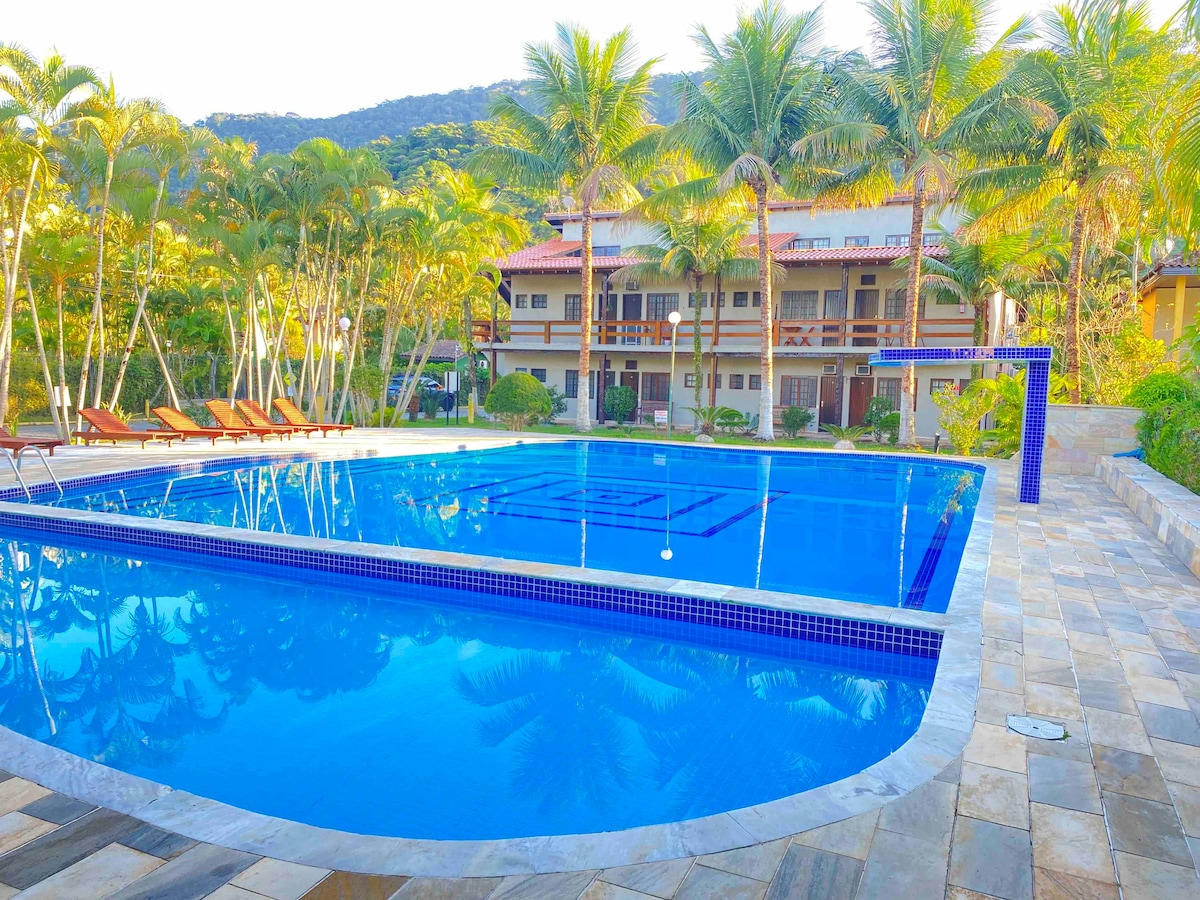 페레키 해변(Praia do Pereque) 바로 앞에 위치하고 있습니다(길 건너편). 성인 및 어린이 수영장, 헬스장, 사우나 및 스팀 사우나, 스파, 테니스 코트, 탁구대, 당구 및 탁구대로 구성된 훌륭한 레저 시설을 갖추고 있습니다.