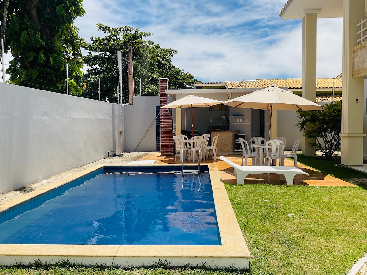 Casa na beira da praia de Vilas do Atlântico, a aproximadamente 10km do aeroporto de Salvador. Hospedamos até 12 pessoas (4 camas casal, 2 solteiro e 2 colchões extra). 4 suítes com ar condicionado e ventilador de teto. Internet Wi-Fi e TV. Cozinha com fogão 5 bocas, microondas e geladeira. Garagem para 2 carros. Na rua da barraca de praia Odoyá Iemanjá. Além do aluguel, cobramos consumos de água; energia; e de lavanderia (caso usem as roupas de cama e banho). Não é permitido festas ou eventos.