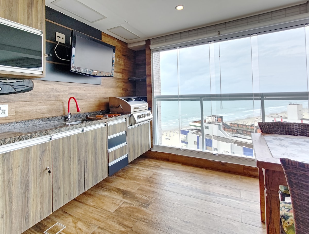 도보로 모든 것을📍 하세요! * 50m do Carrefour, Extra, pharmacies, fair and numerous bars, restaurants, McDonald's, Habib's and Av. Costa e Silva. 🌊 VISTA DESLUMBRANTE- Beira Mar - Guilhermina Beach! 🕗 체크인 및 체크아웃의 유연성, 수수료 없음 및 가능성. 🗝️ 셀프 체크인 📶 와이파이 광섬유 - 400메가. 📺 SmartTv-50 Pol. 바비큐 🍖 키트. 발코니 🪟 유리. 🛌 침구 - 면 100%