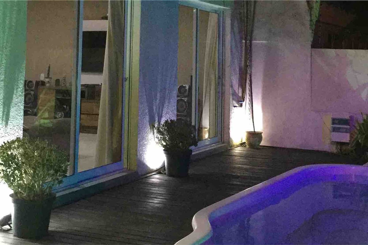 이 조용하고 세련된 공간에서 휴식을 취하세요. 당신을 위해 계획된 마법의 집으로 수영장과 야외 샤워, 바비큐 공간, 야외 미식 공간, 넓고 조명이 잘 된 파티오가 있습니다. 어둠이 되면 별을 감상할 수 있습니다. 내부 시설에는 편안한 소파, 욕실 2개, 침실 2개, 멋진 인도 스타일의 침대, 세심하게 차려진 식탁, 조리도구, 냉장고, 전자레인지, 그리고 물론 알렉사가 있습니다!! 아니요, 저는 그녀 없이 살아갑니다. 오세요!!!