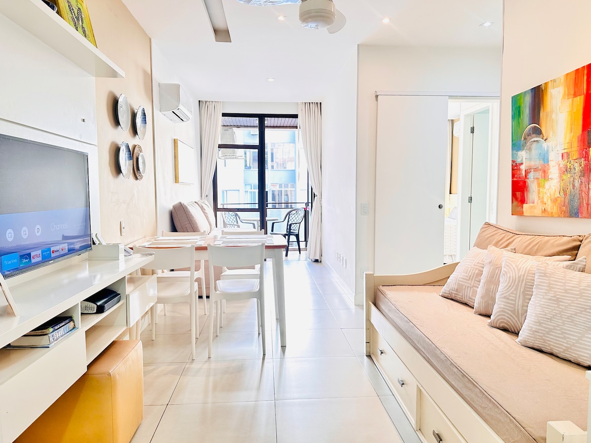 Renovated apartment, tastefully decorated and fully equipped for your comfort. It comfortably accommodates up to 5 guests and comes with air conditioning, Smart TV, Wi-Fi, and a fully stocked kitchen. Perfect for enjoying the best of Rio with convenience, privacy, and access to a full range of amenities in the building: swimming pools, sauna, gym, playground, and two parking spaces. All of this just steps away from the best beaches in Brazil.
