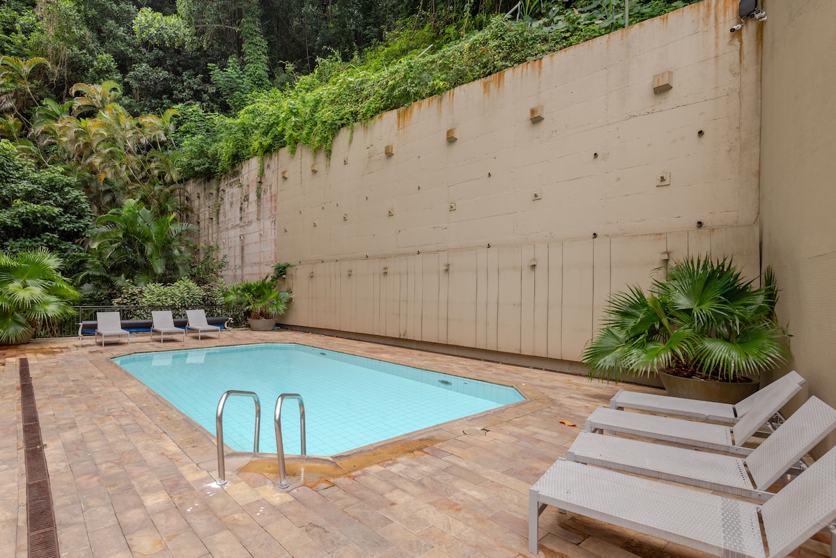 현대적으로 새롭게 단장한 편안하고 고급스러운 싱글 침실 아파트. 해변, 레스토랑, 리오술 몰에서 몇 걸음 떨어진 호텔 내부에 편리하게 위치해 있습니다! 코파카바나에서 가장 안전한 지역에 있는 가장 인기 있는 관광지와 대중교통에 가깝습니다 (호텔 문에 24시간 경찰이 있습니다!). 이 숙소에는 일일 청소 서비스를 포함한 모든 호텔 서비스가 당일 요금에 포함되어 있습니다. 현대적인 고급스럽고 독특한 건축물과 숲 전망의 프라이버시가 멋지게 어우러져