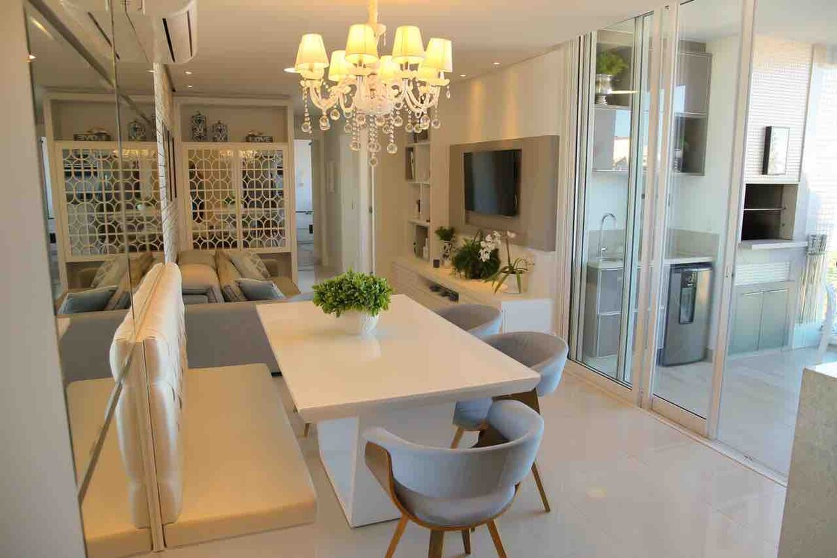 Cada detalhe do apto foi pensado para transmitir a leveza, elegância e aconchego do mar Mediterrâneo. Tons suaves, texturas naturais e iluminação planejada criam o ambiente ideal para dias inesquecíveis. 2 suítes, com ar condicionado e TV 4K. Sala de jantar e estar com TV 65". Cozinha equipada para jantares memoráveis. Sacada gourmet com churrasqueira e vista para o mar. No Rooftop, Piscinas aquecidas, perfeitas para banhos relaxantes até mesmo no inverno e academia totalmente equipada.