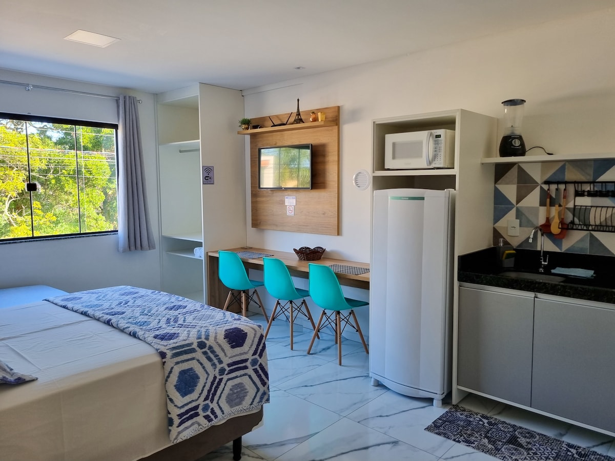 해변에서 불과 400m 거리에 있는 이 매력적인 키트넷에서 봄바스의 멋진 하루를 즐겨보세요! 숙소에는 아늑한 스위트룸 1개, 시설이 완비된 주방, 황동 숯 바비큐가 있는 넓은 발코니, 와이파이, 지붕 없는 주차 공간 1개가 마련되어 있지만 거의 하루 종일 그늘이 있습니다! 같은 곳에 두 채의 집이 있는 조용한 레지던스 1층에 위치해 있으며, 바다와 가까운 편안함, 실용성, 레저의 순간을 추구하는 커플에게 이상적입니다.