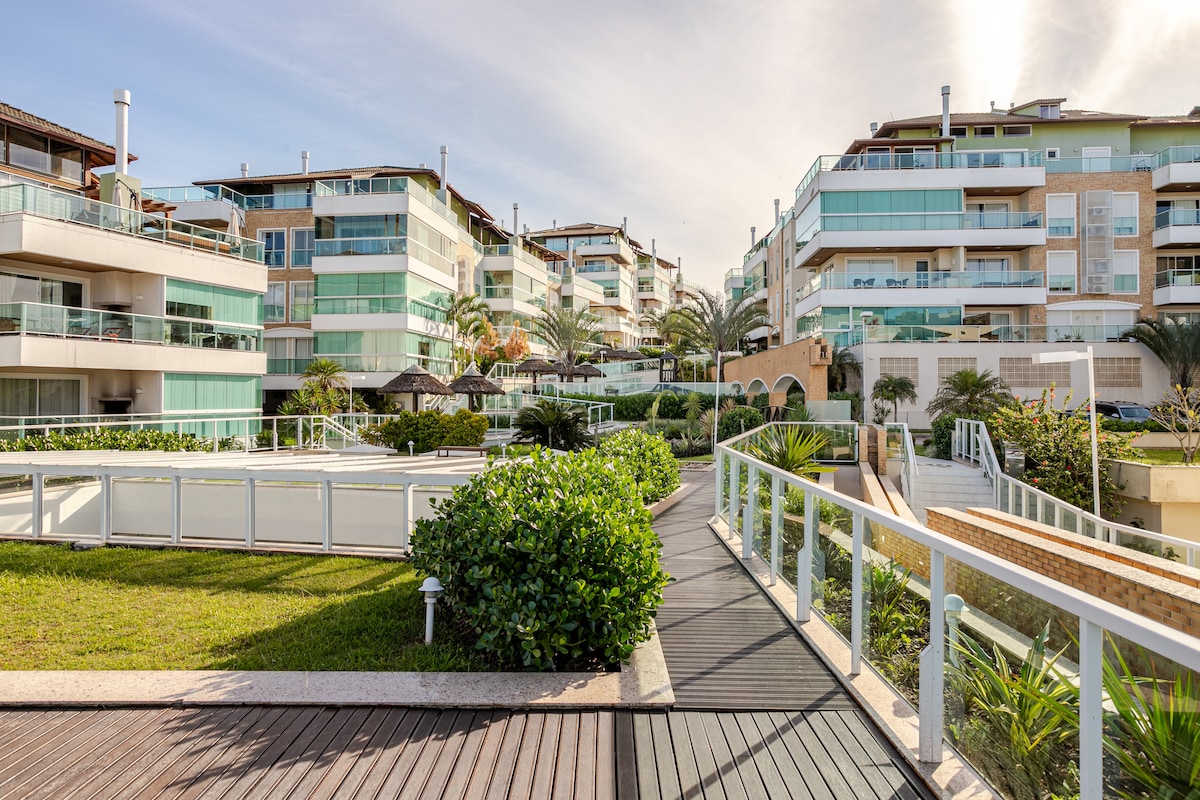 Incrível apartamento em condomínio de luxo, de frente para o mar em Florianópolis. Localizado na linda e calma praia da Cachoeira do Bom Jesus. Tem 3 suítes, finamente mobiliado e decorado, completíssimo. No condomínio tem: Restaurante, academia altamente equipada, sala de jogos, brinquedoteca, sauna, piscinas aberta e térmica, cinema, serviço de praia com cadeiras e guarda-sol, mini mercado "pay-and-go" e um pôr do sol inesquecível. E aí, pronto para apreciar Floripa de uma maneira espetacular?