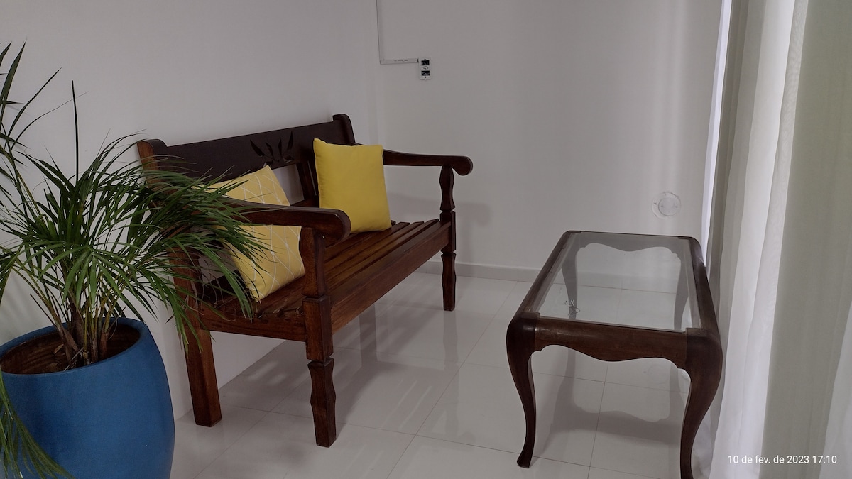 아름다운 해변에서 100미터 거리에 있는 매우 편안한 스튜디오. 침실, 미국식 주방, 욕실, 발코니로 구성되어 있습니다. 에어컨과 천장형 선풍기. 전용 주차장이 있는 매우 안전한 동네입니다. 침구와 수건을 제공합니다.