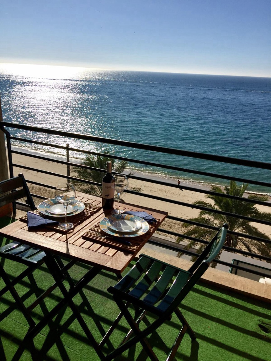 Two-room seafront apartment in the historic fishing village of Sesimbra with balcony - and unobstructed views - onto the Atlantic Ocean. Beach access right across the road from front door and free indoor private parking. 20 minutes away from Quinta do Peru Golf Club, in Azeitão.