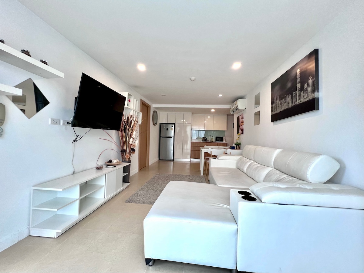 FEELING LIKE STAYING IN PARADISE, seaview 1 bedroom with living room and bedroom, size of 38 sqm with seaview of Pattaya Bay. You can see Pattaya Pier/ Koh Larn Island from our Living Room. It is located on 30th floor with fully/well furnished apartment. it has nice furniture/L shape Italian leather sofa in living room, King size bed, kitchen with stove, 2 Smart TVs, free Fast Optic Fiber 200/100 Mbps WIFI, free Netflix, free parking, free swimming with slider, free sauna, Gym, kid facilities.