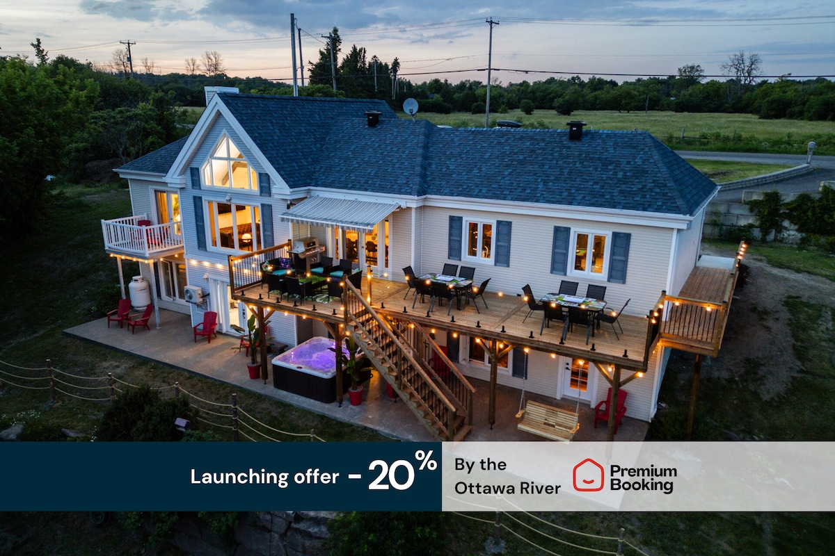강과 산으로의 완벽한 휴양지로 오신 것을 환영합니다! 넓은 1에이커 부지에 자리한 평화로운 해변 전망의 전원주택으로, 전용 해변과 선착장이 있습니다. 완전한 평온 속에서 강과 산의 숨 막히는 파노라마 전망을 즐기세요. 오타와와 몬트리올의 중간 - 자연 애호가와 가족을 위한 이상적인 휴양지. • 전용 선착장(여름 한정) • 바비큐 및 화로 • 벽난로 • 카누 2대 • 아늑한 거실 공간 + 완비된 새로운 주방 • PS3(게임 20개 포함) • 모든 필수품 제공