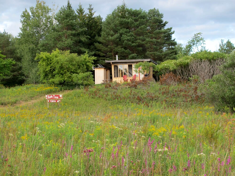 The Apple Tree Cabin is nested is on the edge, of our farmland. It's surrounded by fields, forest and wetland. A cozy cabin with windows on three walls, heated with a woodstove and fully equipped to make your stay a one-of-kind experience. Enjoy the walking trails, the farm, the forest, the wetland and all good things nature has to offer. Cabin build with wood harvested and milled at the farm. Outside firepit! This is one of our 3 cabins. We also have the Poplar and the Perched cabin.