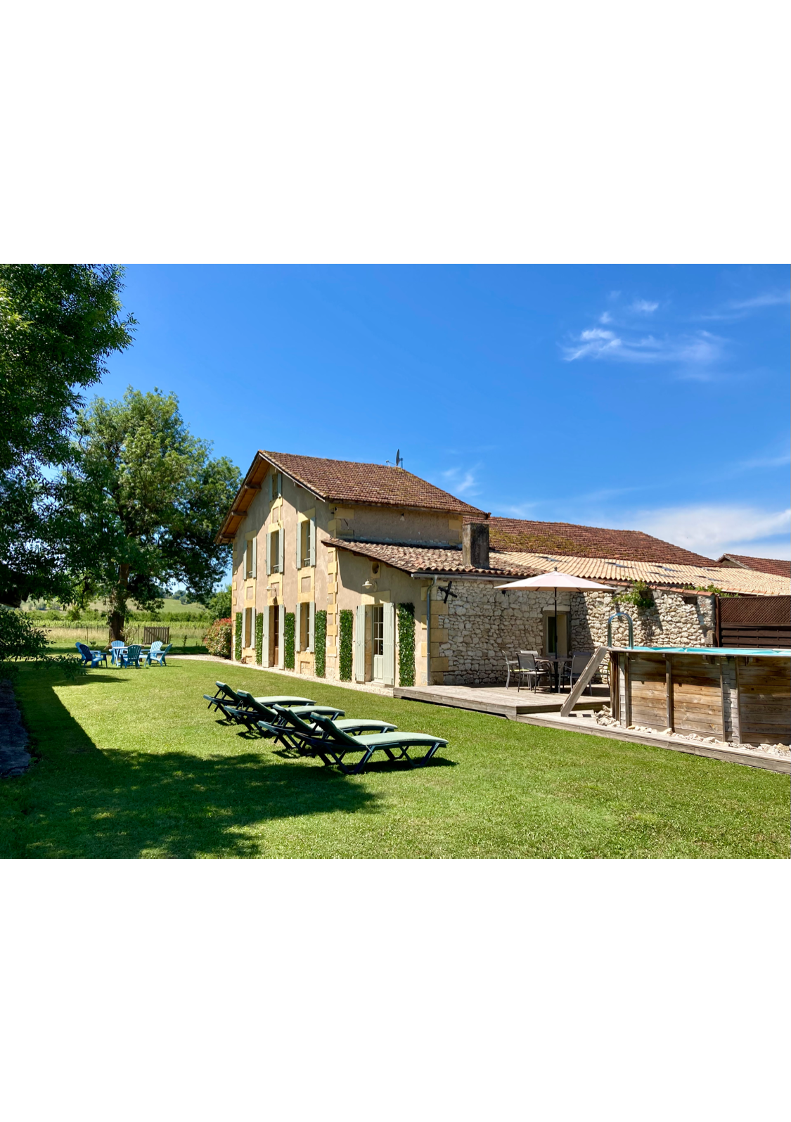 Situé entre bergerac (ville dˋart et dˋhistoire),et sainte foy la grande en Dordogne ( nouvelle Aquitaine ) . A 2 mn à pied du Chateau de Gageac ,et à 10 mn en vélo du célèbre GOLF de Vigier . A 15 mn en voiture de BERGERAC . Au milieu des vignes ,très belle vue . hébergement rénové avec gout ,piscine au sel ,calme et tranquilité garantie, parfait pour une grande famille ou un groupe d'amis . Nombreux sites touristiques à proximité,grottes ,golf ,châteaux… Boulangerie et toutes commodités à 10 m
