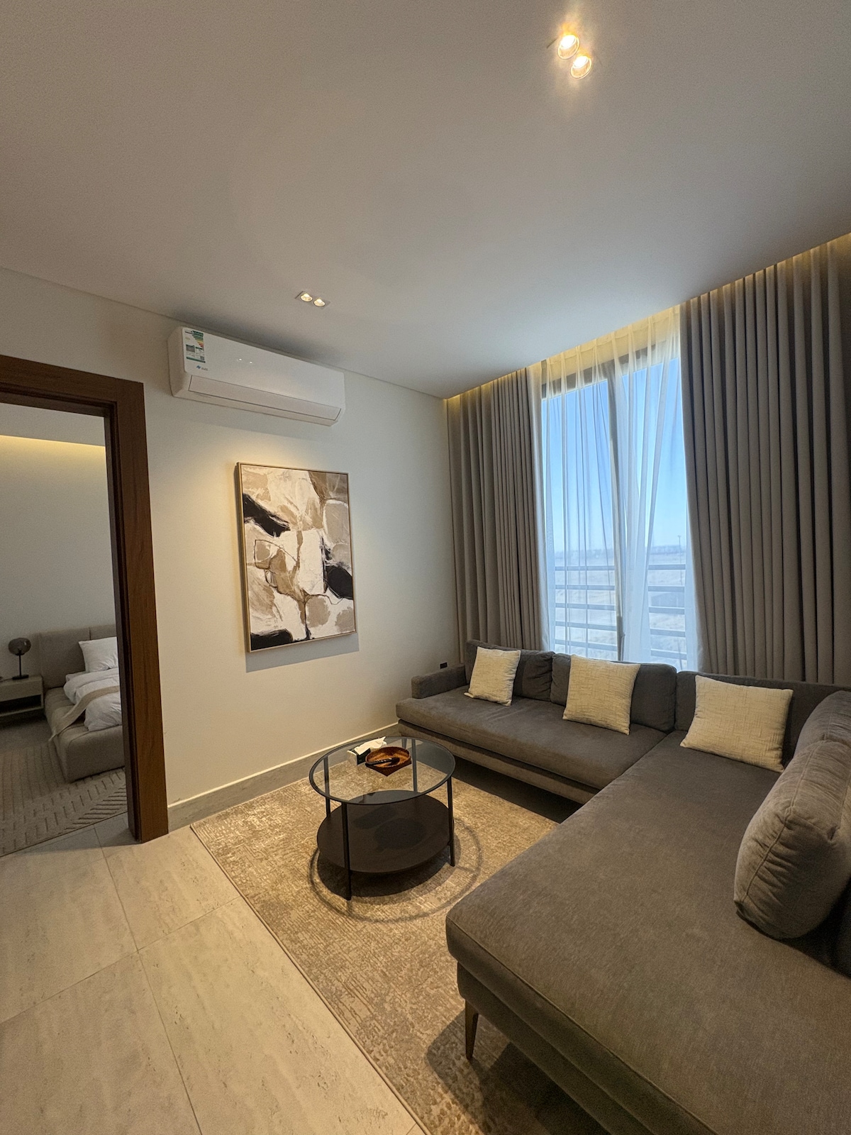 담맘의 수변과 마리나 몰 단지 근처에 있는 담맘의 살람 지구에 위치한 새로운 스튜디오로 우아함과 고급스러움이 어우러진 현대적인 디자인을 자랑합니다. 스튜디오는 새로운 고품질의 가구를 장식하여 장소에 세련된 감각을 선사합니다. 스튜디오에는 스마트한 출입구가 있어 편리하고 편리하게 숙소에 출입할 수 있으며, 편리하고 깨끗한 화장실과 세련된 커피 바가 있어 편안한 휴식을 즐기고 맛있는 커피 한 잔을 즐길 수 있습니다.