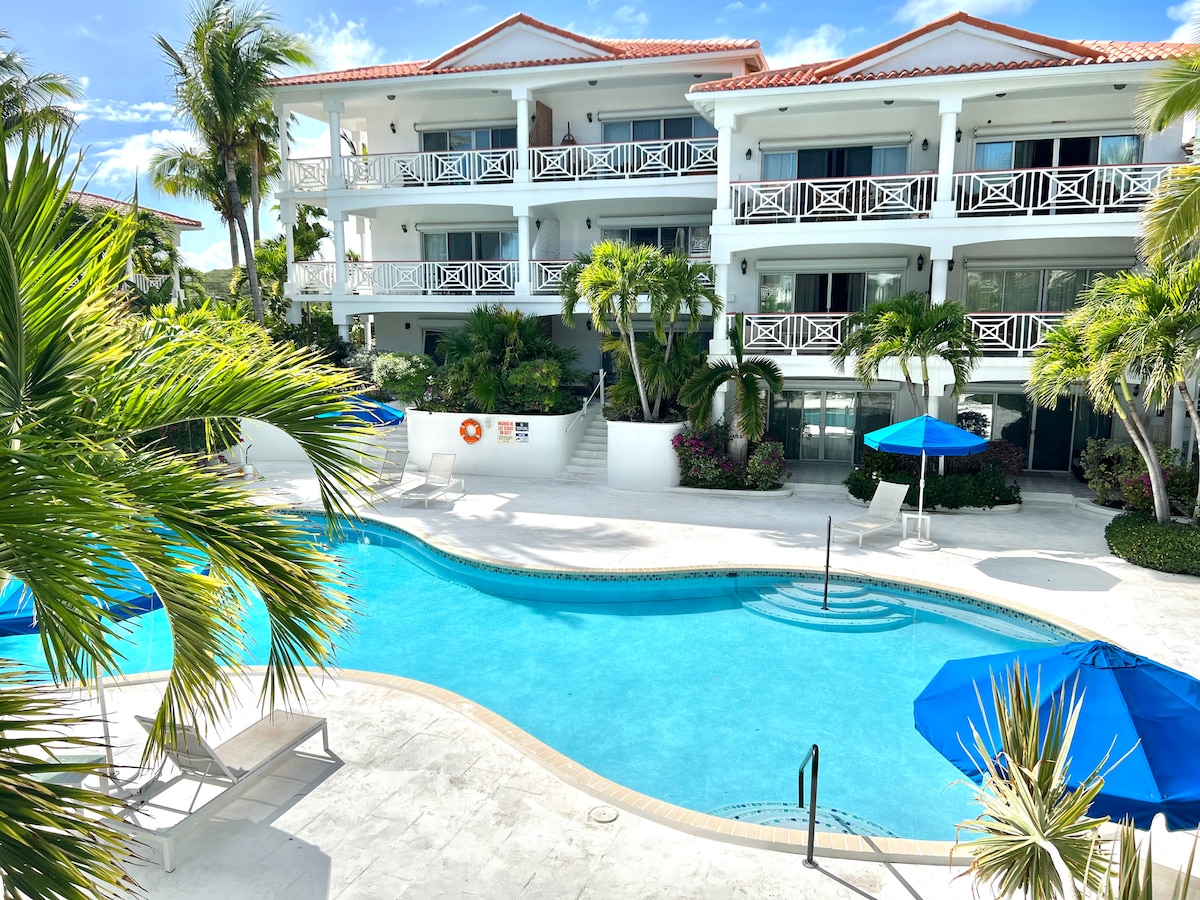 This spacious, comfortable, well-designed one-bedroom poolside apartment is in a private gated community—The Yacht Club. Couples and small families will appreciate the gorgeous grounds, stunning multi-level saltwater pool, relaxed vibe, and local restaurants. A five-minute walk will take you to one of the best beaches on the island, which features a snorkeling reef. The property is next to one of the largest marinas on the island with boat cruises, fishing & a variety of water sports.