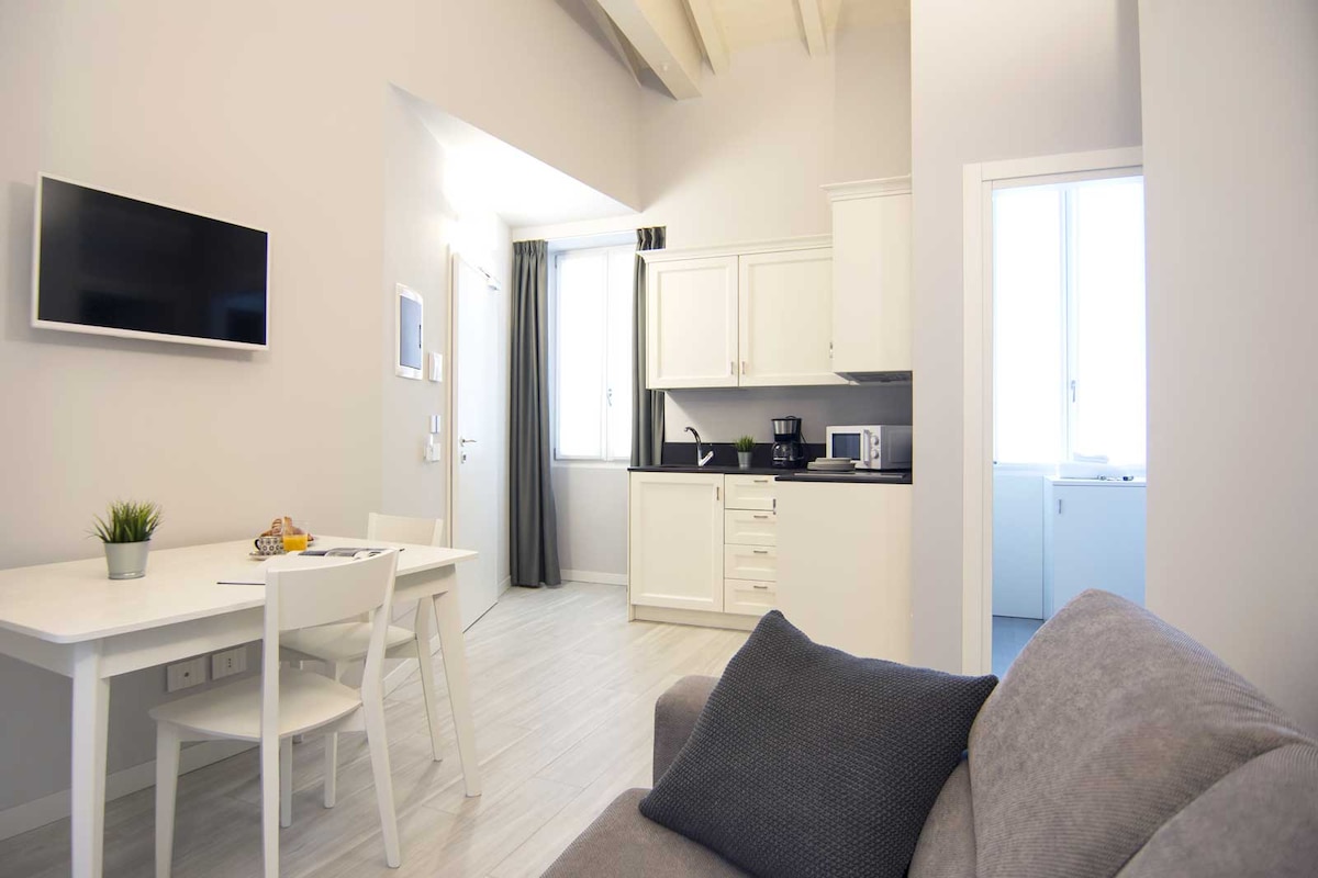 브레시아 중심부에 위치한 이 스튜디오 플랫에는 킹사이즈 침대 1개 + 싱글 침대 1개, 가구가 완비된 간이 주방, 넉넉한 거실, 멋진 스카이라이트로 샤워기가 밝아진 편안한 욕실이 마련되어 있습니다. 호텔 스타일의 아침 식사가 단돈 13,00유로에 제공됩니다! 창문이 있어 풍부한 자연광을 감상할 수 있으며, 특이하고 평화로운 안뜰 전망을 자랑합니다. 콘페티: 24시간 리셉션 이너 가든 (Inner Garden) 자동차/모토/자전거를 위한 안전한 주차장