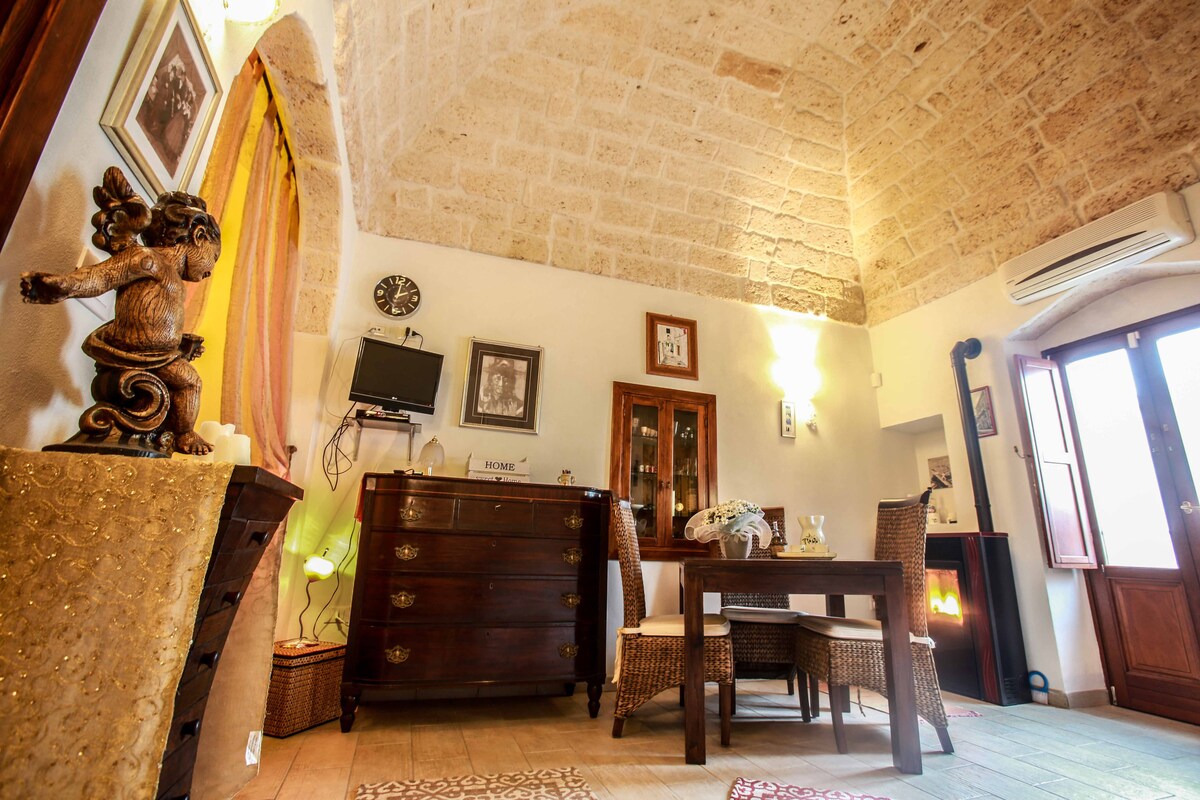 Welcome to Lamia Angelo, a 50sqm apartment in the "Il Portico" residence. πΏ Enjoy beautiful views of our vineyard and the trullo canteen. Luxury amenities like an in-room projector and bath. π Relax by the heated saltwater shared pool surrounded by nature. Il Portico features 6 small units of trulli and lamie. Located in Cisternino's countryside, just 5 minutes from town and 30 minutes from the beaches. Easy access to Martina Franca, Ostuni and other beautiful towns of the Valle d'Itria.
