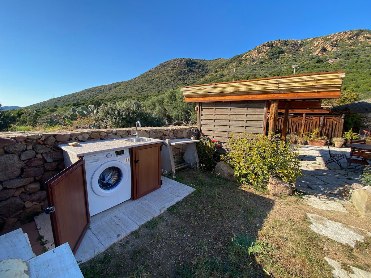 Fronte mare a 10 minuti a piedi dalle spiagge della costa piรน incontaminata della Sardegna, piccola ed isolata casa antica in pietra con una vista mozzafiato. Un luogo estremamente solitario e remoto, unico rispetto alle localitร balneari sarde, in posizione esclusiva lungo il Cammino Minerario di Santa Barbara. Dispone di una camera con camino, bagno ensuite, pergolato con cucina e salotto allโaperto, giardino panoramico. Accesso attraverso una strada sterrata (dissestata) privata IUNR5420