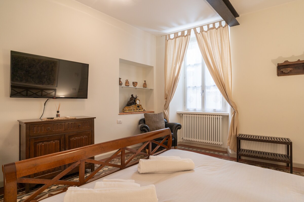 In un contesto signorile, all'interno di un ampia proprietà, un grazioso appartamento indipendente a pochi minuti a piedi dal centro.
