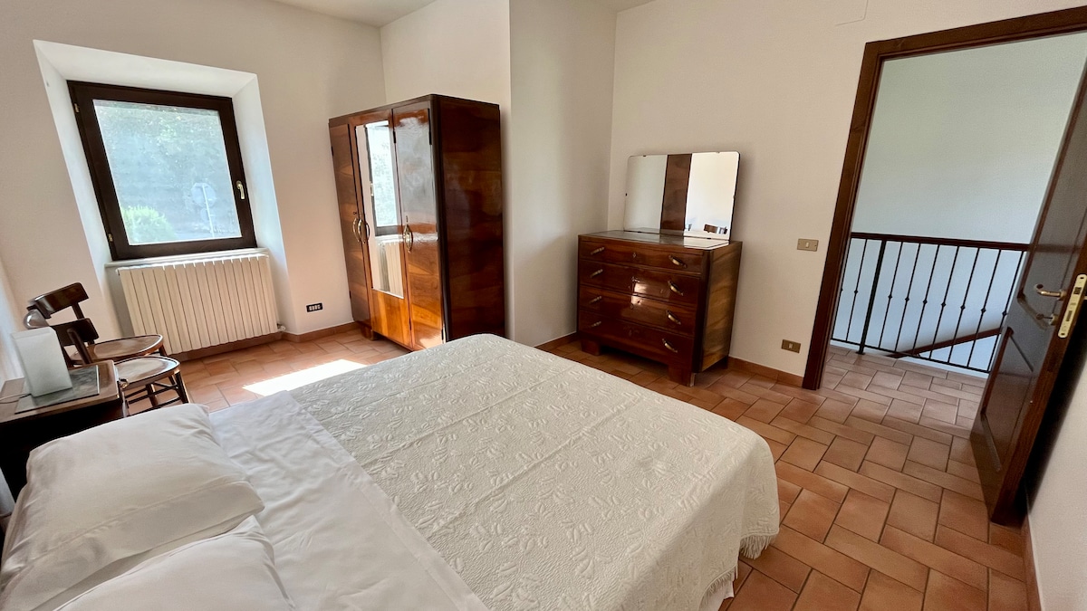 L'Oliveto is a farm in an olive grove in a tranquil valley five minutes from Mogliano, in the heart of rural Le Marche. The two bedroom apartment is on the ground floor, with a terrace and a table set amongst the olive trees with views down to the swimming pool. There is another apartment on the property, with separate outdoor facilities. The tranquil apartment looks out onto the garden which is exclusively for the use of guests. The owners live on the property.