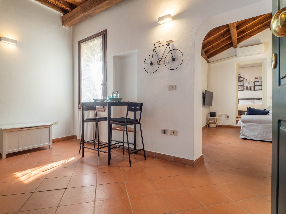 페라라의 역사적인 중심지 한복판에 위치한 특색 있는 아파트입니다. 커플이나 나홀로 여행객에게 적합한 이 작은 보석은 현지 전통의 매력과 현대적인 편안함을 결합한 친근하고 독특한 분위기를 제공합니다. 도보 거리 내에 도시의 주요 관광지가 있습니다. 예를 들어: - 두오모(도보 5분) - 에스텐세 성(도보 10분) - 유서 깊은 중세 성벽(도보 10분) 모든 것을 손쉽게!