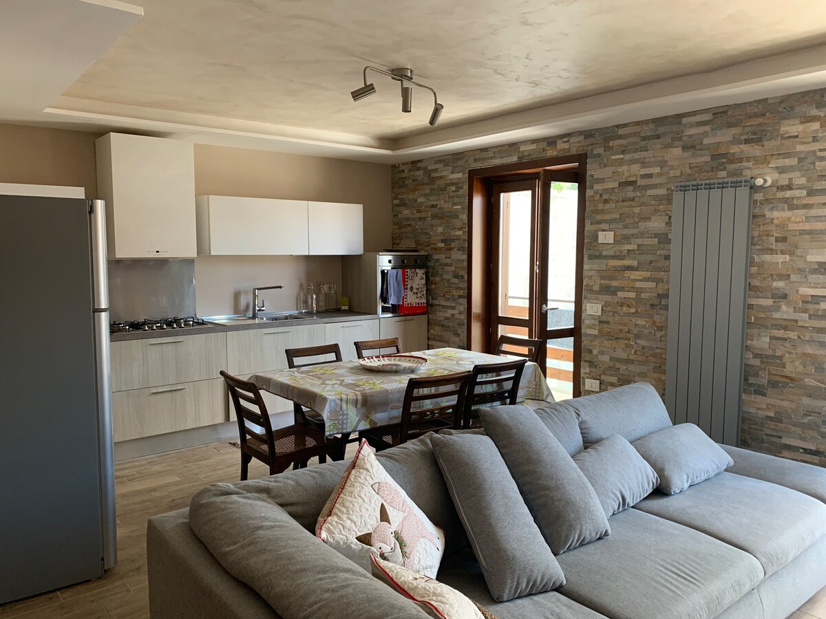 페스코코스탄조의 매력적인 아파트로, 타운 센터에서 도보로 5분 거리에 있으며, 침실 2개 (더블 침대가 있는 침실 1개와 싱글 및 풀아웃 침대가 있는 침실 1개), 소파 베드와 벽난로가 있는 거실, 식사 공간, 주방 공간, 2개의 욕실, 시설이 완비된 대형 정원 (테이블, 의자, 우산, 바베큐) 으로 구성되어 있습니다. 이 아파트에는 필요한 모든 시설이 완비되어 있습니다(와이파이, 스마트 TV, 주방의 식기류와 냄비, 침구와 욕실).