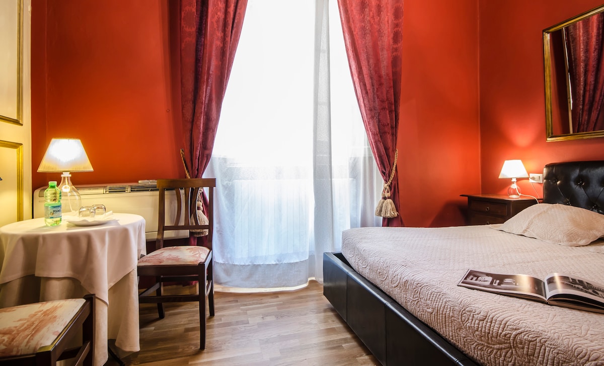 This amazing suite, ideal for a family of four, features original frescos from the eighteenth century. Located on the first floor, it comprises two bedrooms: one with a king-size bed and another with two queen beds, each connected to a private bathroom. A private living room is available for study or work in tranquility. The rooms offer views of the garden and swimming pool.