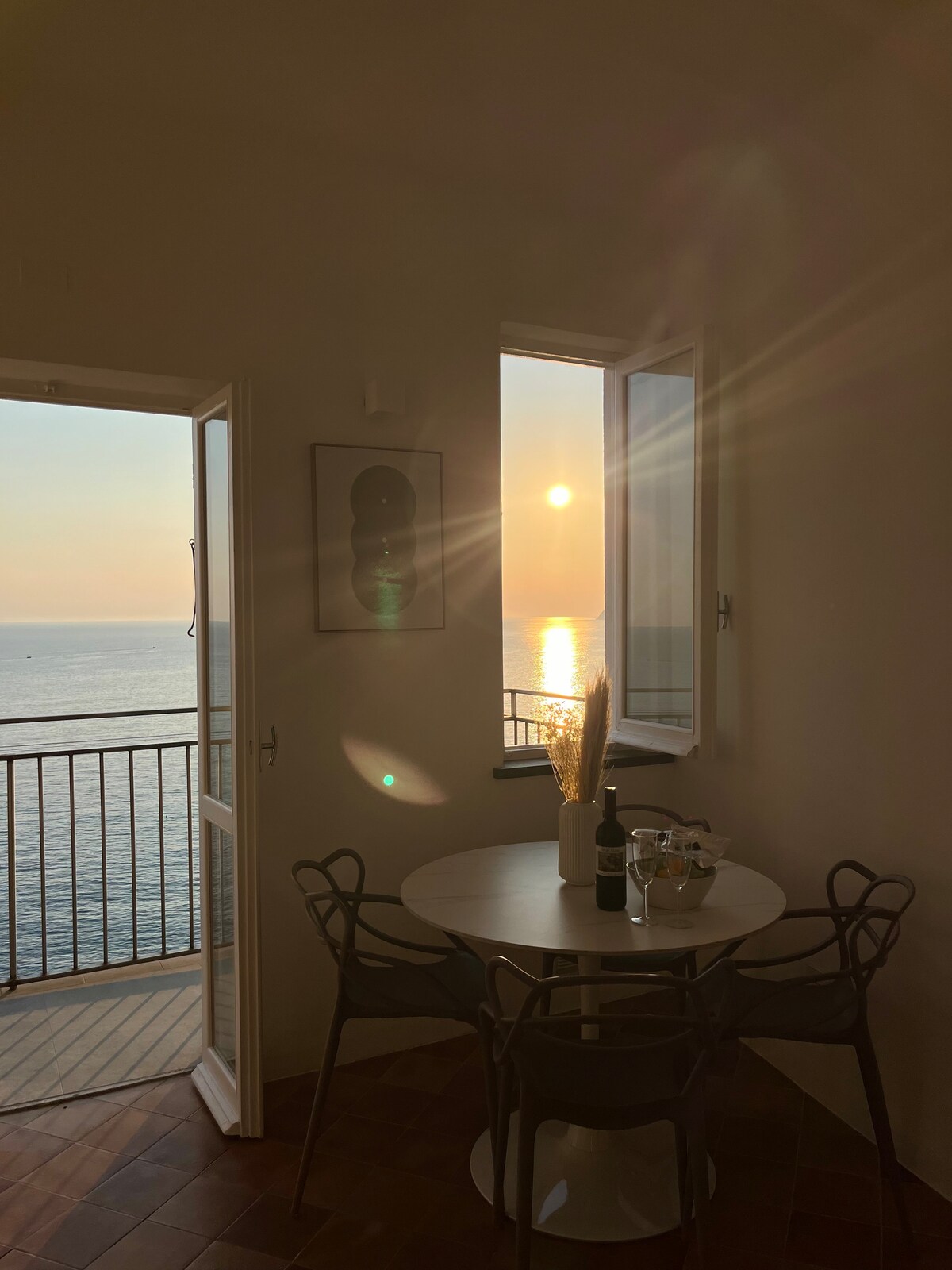 마나롤라의 고지대에 위치한 황금색 펜트하우스는 바다를 바라보는 테라스에서 마나롤라의 모든 지붕을 내려다볼 수 있습니다. 시내의 북적이는 생활과 사람들의 소리에서 멀리 떨어져 이곳에서는 평화롭고 편안하게 숨막히는 전망을 즐길 수 있습니다(말 그대로!). 이곳에서는 독특한 자연 풍경의 색감을 즐길 수 있으며, 좋은 샤케트라 와인 한 잔과 함께 즐기시면 더욱 좋습니다.