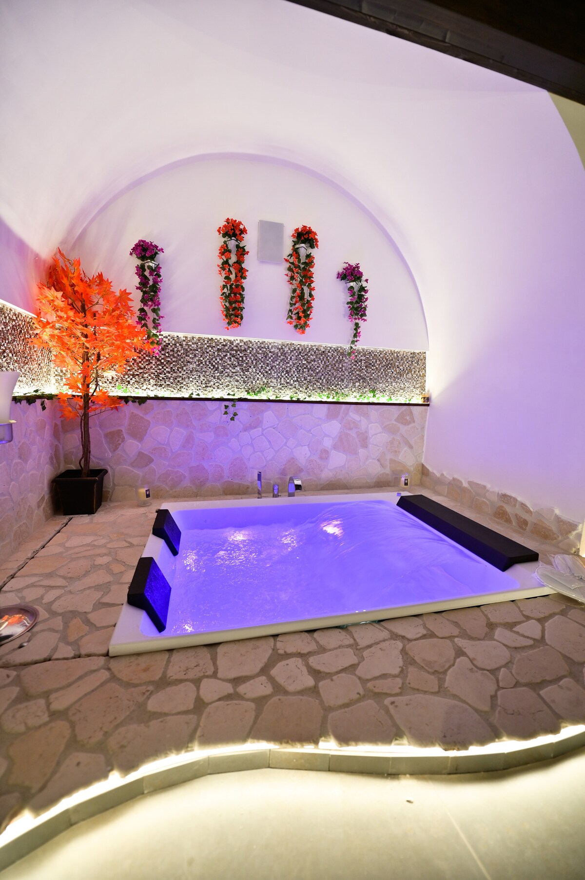 Elegant and spacious apartment (77 sqm2) with private underground spa, carved into the rock, equipped with turkish bath, shower area, king size jacuzzi. Located in via Fiorentini, the main street of the Sasso Barisano, it is ideal for enjoying the Sassi of Matera to the fullest. Strategic and easily accessible location. Upstairs is the bedroom with its own bathroom. On the ground floor the master bathroom, the kitchen and a splendid living area, connected to the wellness area on the lower floor.
