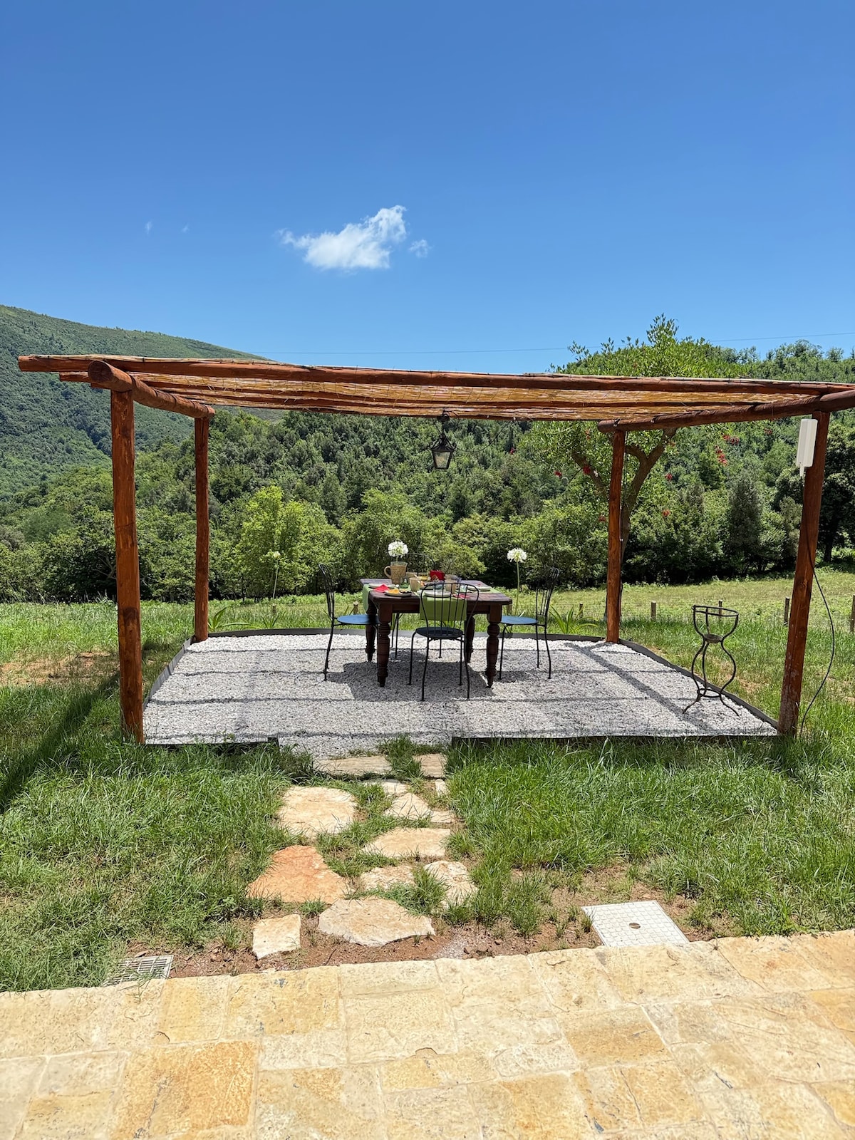 Casa vacanze a Torraca (SA) Immersa nel verde tranquilla a 2 passi dal mare,raggiungibile in auto con soli 10 minuti.Piano terra con entrata su un ampio patio,forno a legna, griglia, tavolo12 posti, e cucina attrezzata.Sala da pranzo con camino e tavolo da 6-8 posti e tv. 2 camere da letto con letti matrimoniali. Bagno. lavanderia in veranda. Terrazzo con panorama sulla baia di Sapri.Altro terrazzo sopra il tetto. Completamente alimentata con energia solare, colonnina per ricarica automobili.