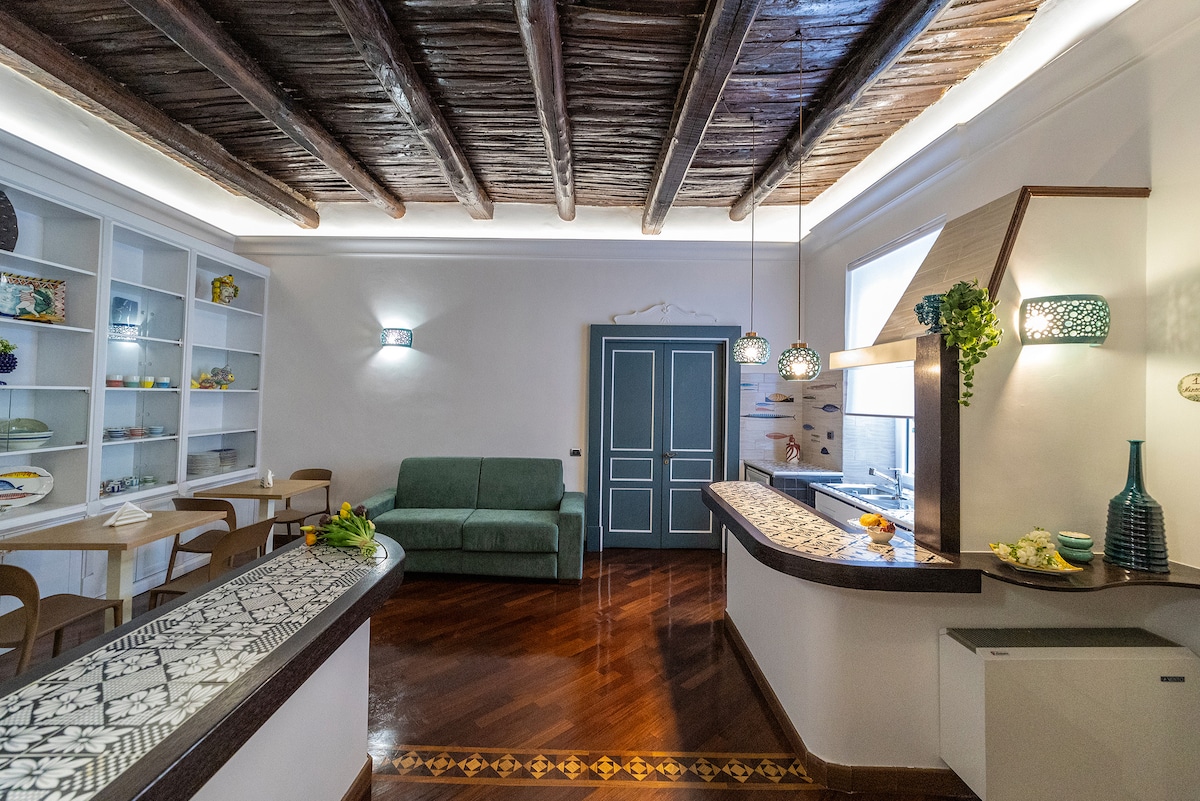 역사 중심지에 위치한 항구 전망의 아파트(해변, 요트 항구, 예술가의 빛에서 200m 거리). 레스토랑과 쇼핑에 이상적인 대중교통 서비스 지역. 역사 지구, 아말피 해안, 폼페이에 가기에 완벽한 위치. 호스트와 같은 집에 위치한 객실은 욕실, 더블 침대 및 소파 베드를 갖추고 있습니다. 에어컨, 위성 TV, 무료 와이파이, 미니바, 전자레인지. 파노라마 발코니 사용 및 고대 전통의 환대.