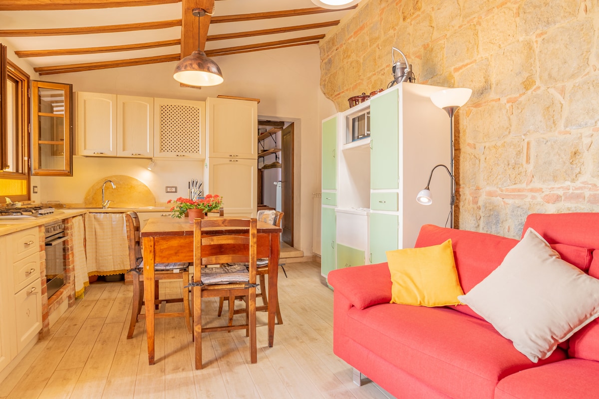 Nell’antico complesso rurale del Caggio, “Il vecchio noce” offre un appartamento interamente ristrutturato che può ospitare da 2 a 4 persone. Il complesso è situato nel cuore della campagna toscana, sulla Montagnola senese, nei pressi del borgo medievale di Monteriggioni e del tracciato della Via Francigena.