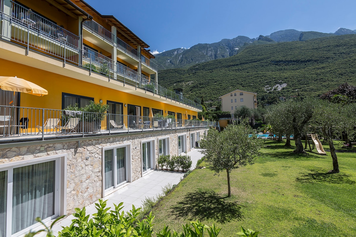 레지던스 파르코 라고 디 가르다 (Residence Parco Lago di Garda) 는 호수에서 불과 50m 떨어진 고급 호수 전망을 자랑하는 평화롭고 햇살이 잘 드는 위치에 있습니다. 1층에 정원이 있거나 1층에 발코니가 있는 호수 전망의 원룸 아파트, 더블 소파 베드가 있는 주방과 거실, 샤워기가 있는 화장실. 수영장, 정원, 주차장, 자전거 및 서핑 창고.