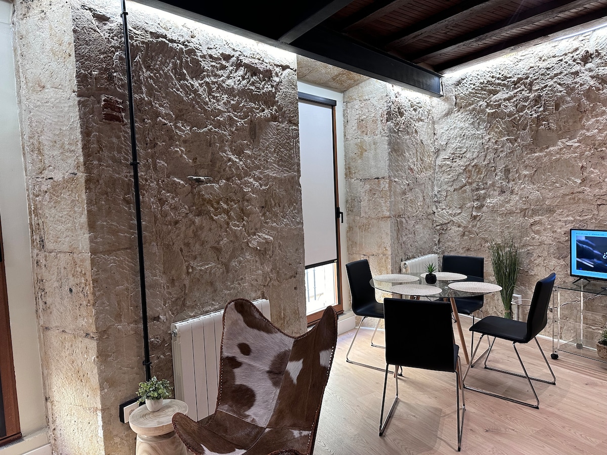 Exclusivo apartamento ubicado en una esquina de la Plaza Mayor. Está distribuido en dormitorio, salón con cocina americana y baño completo. Apartamento en pleno centro de la ciudad con todo lo que ello implica, cafés, restaurantes, terrazas y todo el bullicio del centro pero...en el que una vez que cierras la puerta te encuentras en el que será tu hogar por el tiempo que elijas.... El apartamento está dotado de aire acondicionado en todas las estancias.