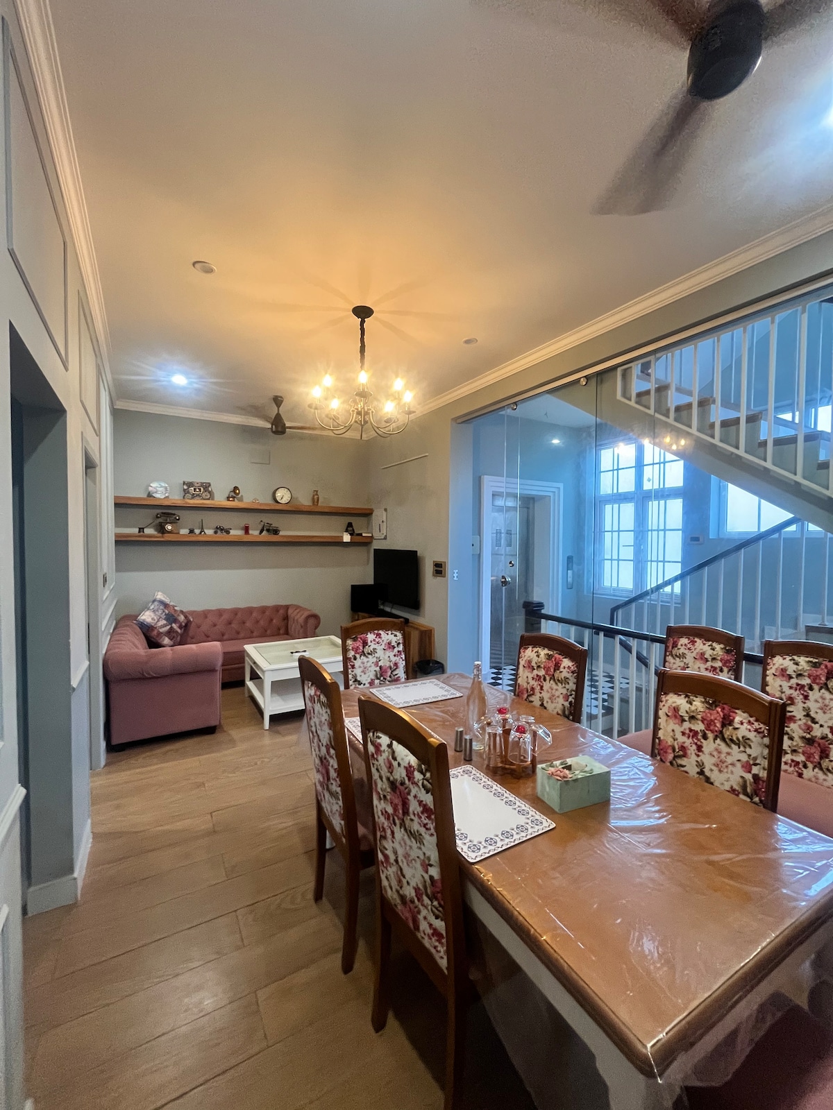 가구가 완비된 4베드룸 로우 하우스에는 1층에 리빙 쿰 다이닝, 1층에 패밀리 룸, 2층에 테라스 2개, 지하에 채식 하우스가 있습니다. 매우 평화로운 장소인 슈브 엔클레이브에 있으며, 센트럴 위치 - 사르자푸르 로드에서 차로 5분, 코라망갈라에서 20m 거리에 있습니다. 숙소에는 모든 시설과 기구가 갖춰진 주방이 있습니다. 테라스에는 좌석 라운지, 스툴이 있는 바 테이블이 있으며 파티 공간으로 사용할 수 있습니다. 이 숙소는 2층에 와이파이 연결이 되어 있습니다.
