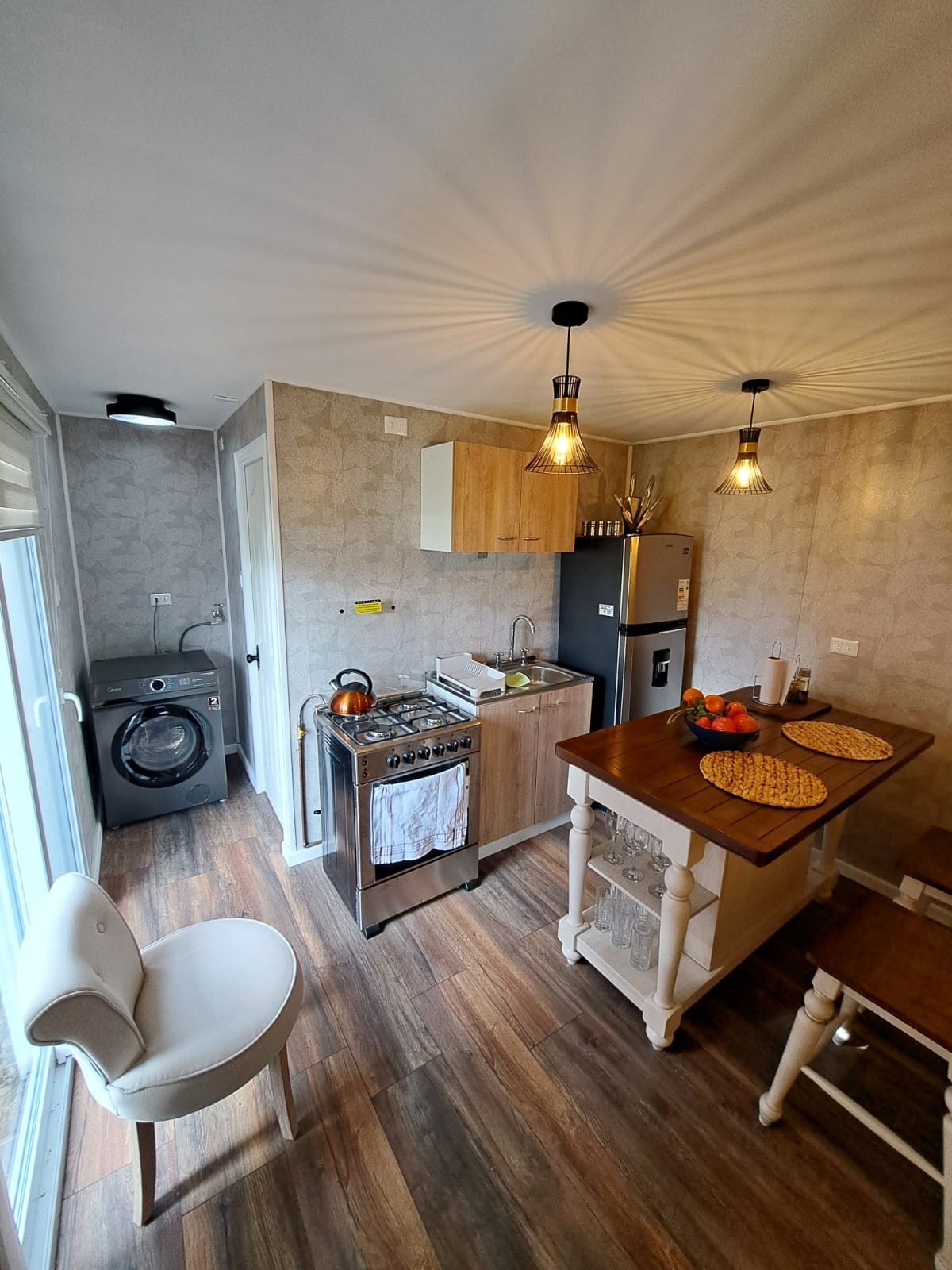 카바냐 아이센은 푸에르토 아이센에 위치해 있으며 테라스를 제공합니다. 이 아파트에는 정원과 무료 전용 주차장이 있습니다. 이 침실 1개짜리 아파트에는 무료 와이파이, 평면 TV, 세탁기, 오븐이 있는 주방이 있습니다.