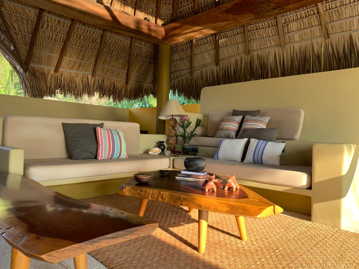 The perfect place to rest in Puerto Escondido. 200 meters from the beach, private pool surrounded by nature, blurring the meaning of inside and out, you will enjoy one of the best of Puerto Escondido's designer homes. With its lofted style palapa, Teo is the ideal retreat to make your stay unforgettable. Also equipped with Starlink to stay connected. Our house manager, Juanita, will help you keep the house clean and prepare food, while you enjoy time at the beach or pool. WELCOME TO CASA TEO