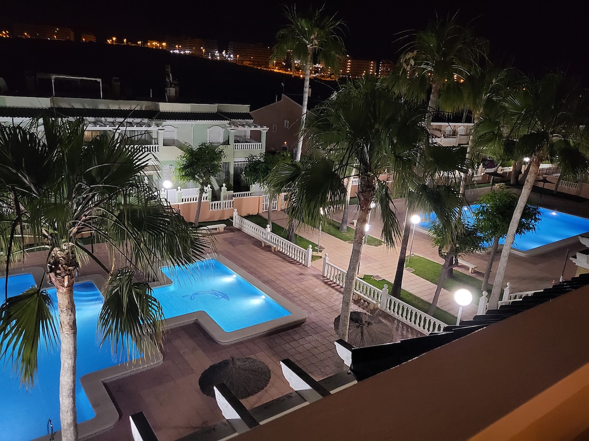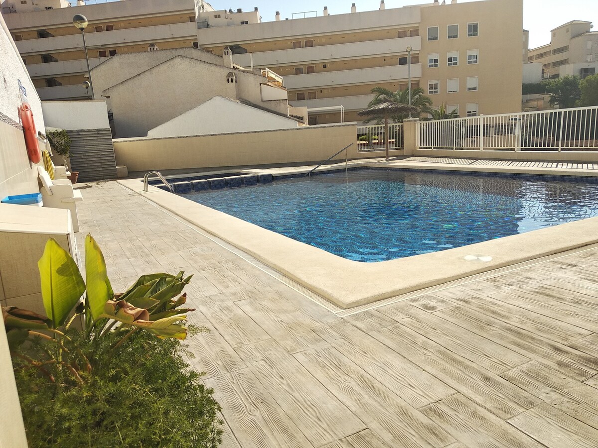 수영장, 전용 주차장이 있는 아늑하고 밝은 아파트로 해변에서 250m 거리에 있습니다. 완비된 시설, 넓은 테라스가 있는 2개의 침실, 공동 수영장 및 주차장. 위치가 매우 좋습니다. 중심지나 해변에 가기 위해 차가 필요하지 않습니다. 상업 센터인 메르카도나와 매우 가깝습니다. 모든 것에 가까운 매우 조용한 아파트 주택가. 공항은 15km 거리에 있으며 차로 약 15분 거리에 있습니다. 커플, 출장, 가족 단위 여행객(자녀 동반), 소규모 단체 여행객에게 이상적입니다.