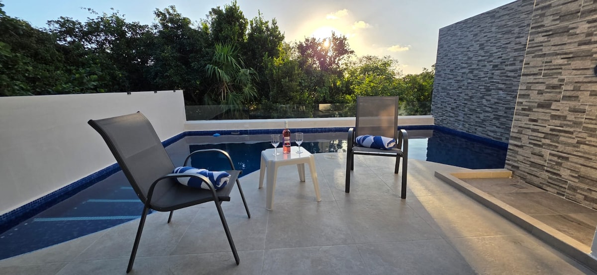 Relรกjese en este refugio รบnico y tranquilo ubicado en Distrito Morelos, hecho con lujo , una hermosa vista, sonido de las olas del mar, estacionamiento, cuenta con dos albercas, una en el roof y la otra en planta baja con un jacuzzi, area de bbq gimnasio, espacio de co-working y un carrito de golf elรฉctrico para poder explorar los alrededores , incluido para uso exclusivo de nuestros huรฉspedes. Licencia: 11242959