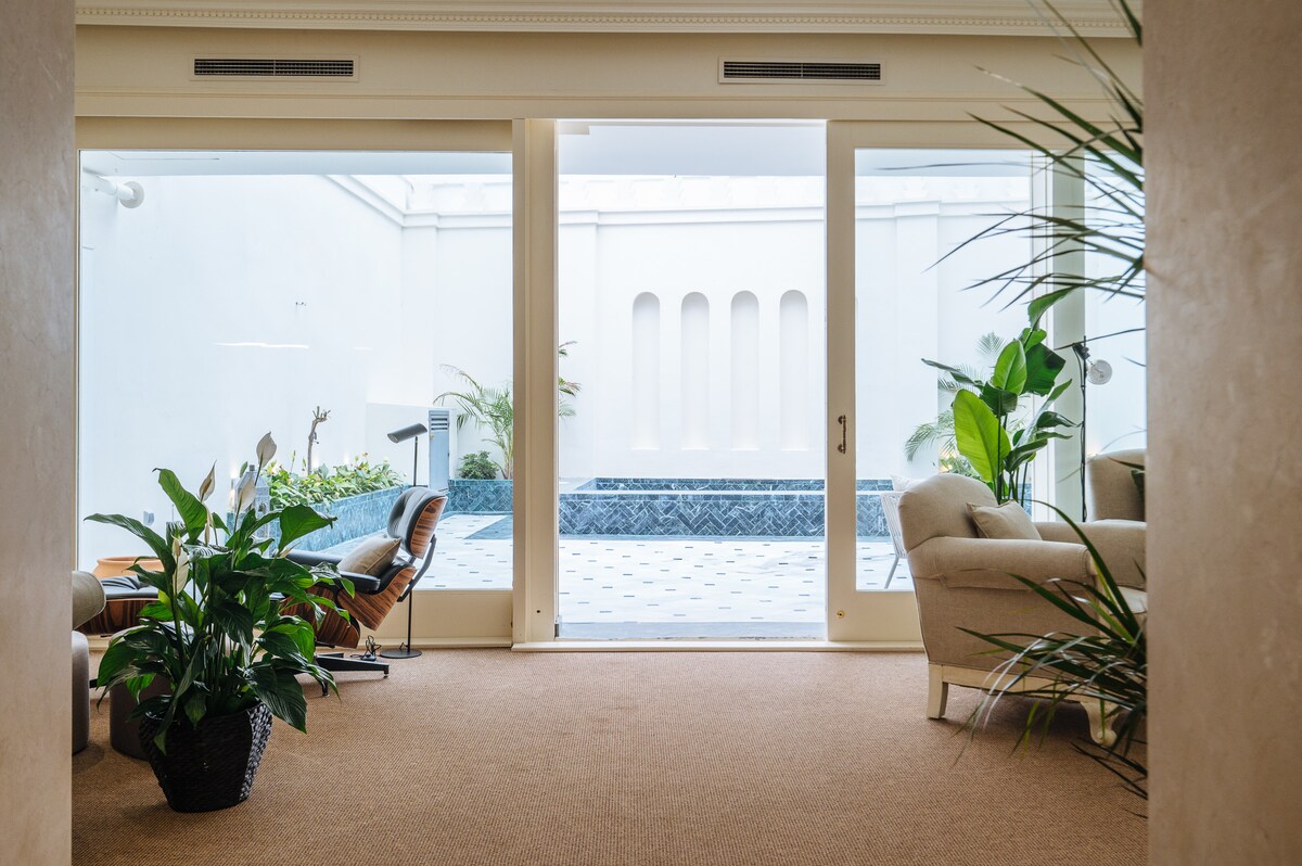 ํ๋์ ์ธ ํด๊ฐ์ง ์์๋ก ๊ฐ์กฐ๋ ์๋ฆ๋ต๊ฒ ๋ณต์๋ ํ์ดํ์ฐ์ค๋ ๋ฐ๋ปํ๊ณ ํ๋์ ์ธ ์ธํ ๋ฆฌ์ด์ ์ธ๋์คํธ๋ฆฌ์ผ ์คํ์ผ์ ๊ฐ๊ฐ์ผ๋ก ์ค๋๋ ๊ฑด๋ฌผ ๊ตฌ์กฐ๋ฅผ ๊ธฐ๋ ํฉ๋๋ค. ๋ฐ๋ฅ์์ ์ฒ์ฅ๊น์ง ์ด์ด์ง๋ ํ๋์ค์ ์ฐฝ๋ฌธ์ ํตํด ์ ํต์ ์ธ ๋ฐ์ฝ๋๊ฐ ๋ด๋ ค๋ค๋ณด์ ๋๋ค. ๋ ธ์ถ๋ ์ฌ์ ๋ฒฝ์ ์กฐ๋ช ์ ๋ฐํ๊ณ ๋ฉ์ง ์ฐธ๋๋ฌด ๋๋ค๋ณด ์ฒ์ฅ์ ๋ฐํ๋ฉฐ ํ ํธ์ธ ๊ณต๊ฐ์ ํ์ด์ด ๊ฐ๋ํฉ๋๋ค. ๊ณต์ฉ ์ต์์ธต ํ ๋ผ์ค์์๋ ๋์ฑ๋น ์ง๋ถ๊ณผ ํ๋๋ค์ ๋๋ผ์ด ์ ๋ง์ ๊ฐ์ํ ์ ์์ต๋๋ค.