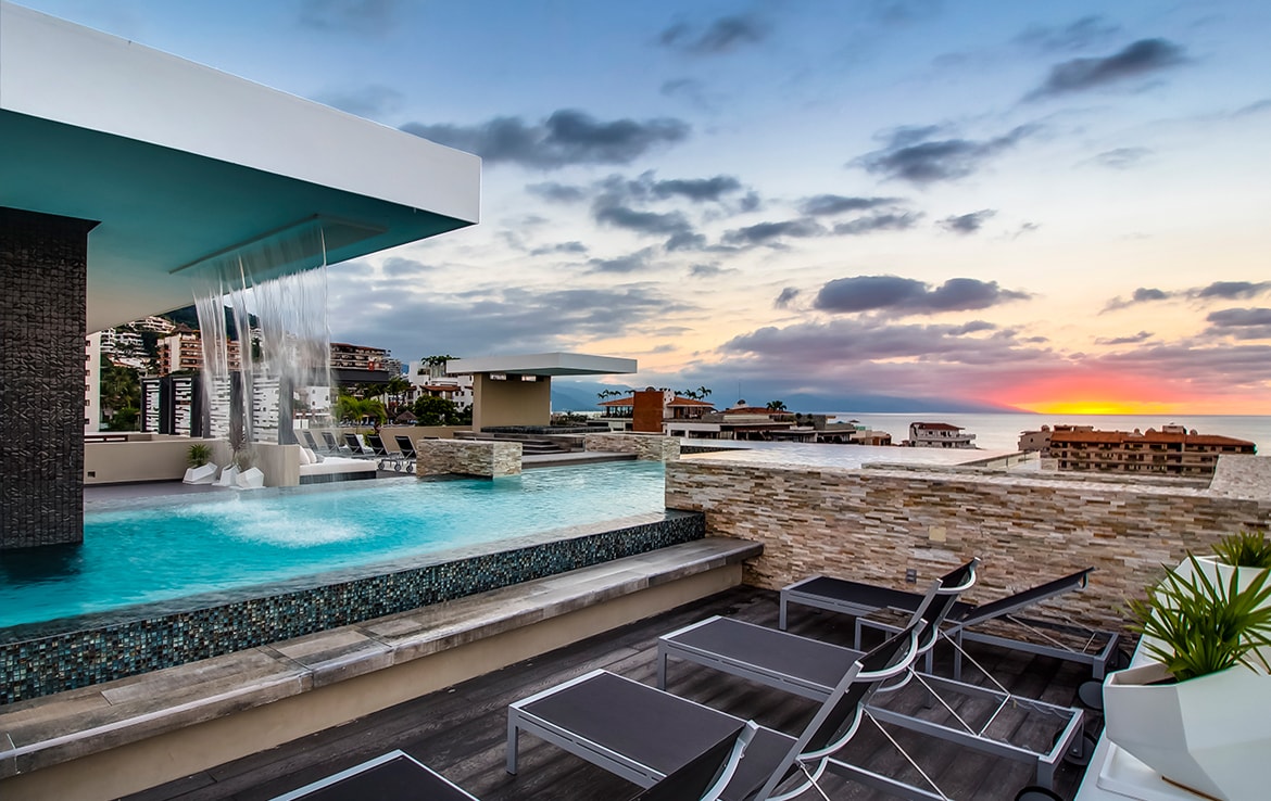 5* Luxe condo-360 view of PV from rooftop pool