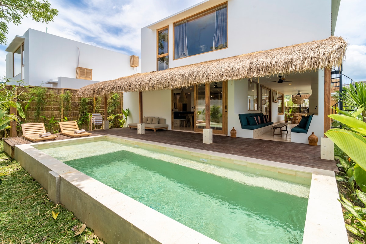 Discover our 2br Dunia villa, a stylish villa tucked away in the lush hills of Selong Belanak. Nestled amidst lush jungles, it's just 12 minutes from one of South Lombok’s most stunning beaches and 35 minutes from Lombok International Airport. Thoughtful design that fits perfectly to families with kids. Kitchen amenities, a private infinity pool and attentive staff are here to make your stay as pleasant as possible. Perfect jungle gem for a romantic getaway far from the busy city noise!