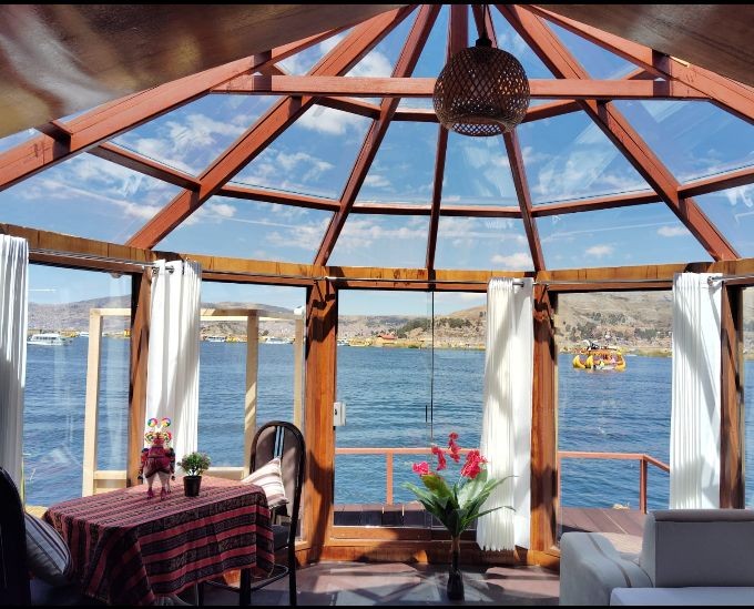 티티카카 호수에 떠 있는 섬에서 특별한 경험을 즐겨보세요. 황금빛 일출, 끝없는 하늘, 고요한 밤을 만끽하세요. 조식, 보트 이동 및 선택 투어(카약, 타킬레섬 및 우로 커뮤니티 투어)를 제공합니다. 태양을 볼 수 있는 두 개의 방: 하나는 일출, 다른 하나는 일몰. 호수와 함께 평화롭게 물 위에서 휴식을 취하세요.