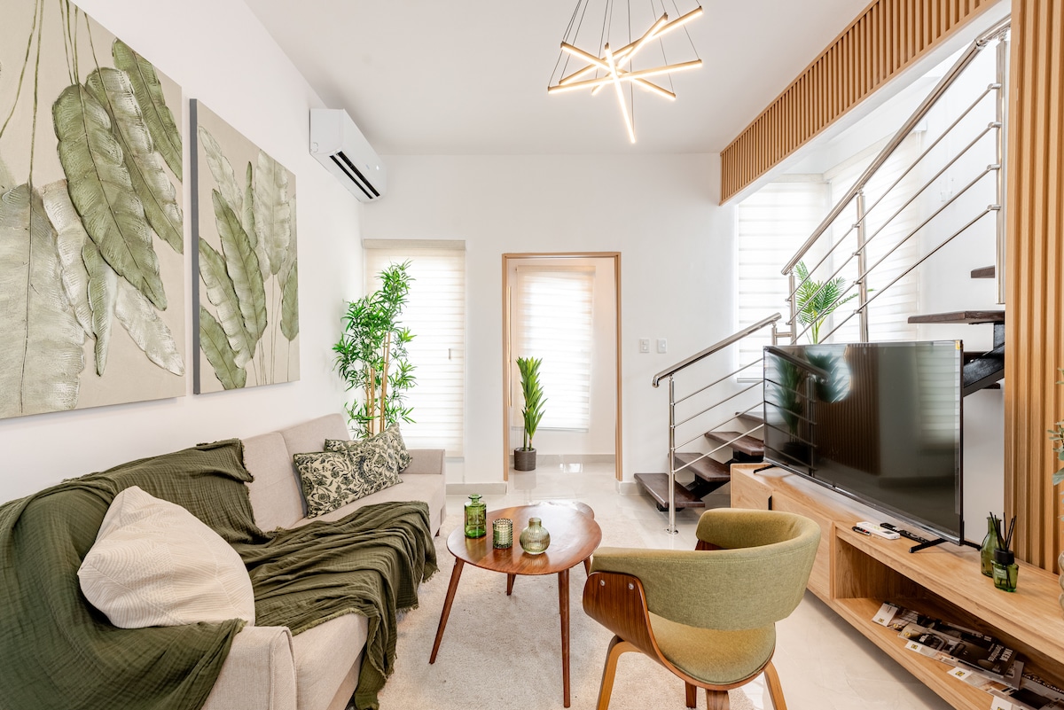 푼타카나 시내에 위치한 침실 3개, 욕실 3개짜리 아늑한 숙소에서 편안한 시간을 보내세요. 에어컨, 초고속 와이파이, 스마트 TV 2개, 피쿠지(온수 없음)가 있는 전용 테라스를 갖추고 있어 편안함과 편리함이 완벽하게 조화를 이루고 있습니다. 시설이 완비된 주방, 안전한 주차 시설, 연중무휴 보안 및 대형 공용 수영장을 갖추고 있어 원활한 경험을 보장합니다. 푼타카나 시내와 코코봉고에서 단 3분, 공항에서 12분, 해변에서 15분 거리에 있습니다. 지금 예약하세요!