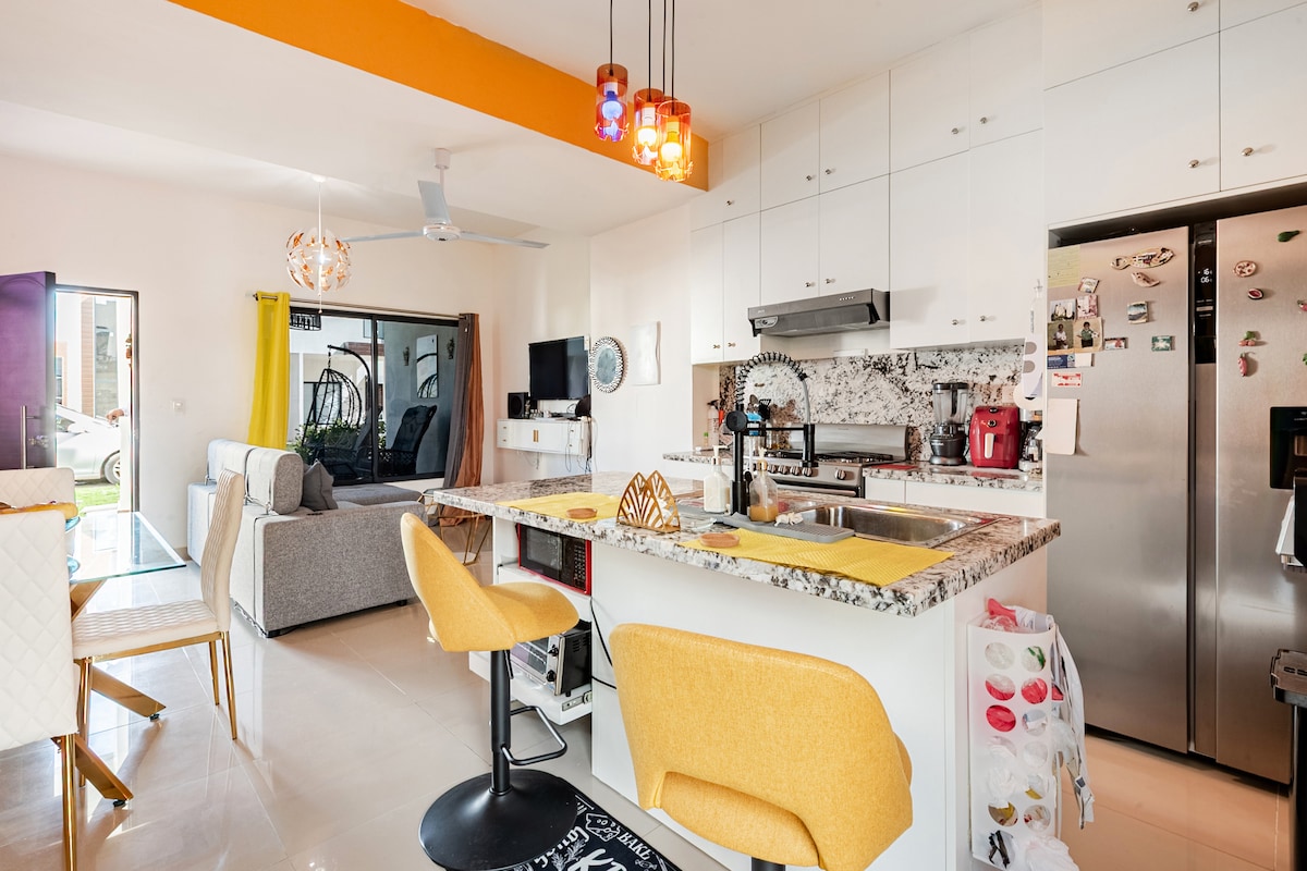 Escape to your private Punta Cana oasis! This newly built, stylish, and tastefully decorated 3BR condo is located in a secure gated community and is a 3-minute drive from downtown PC. Lounge by the private and cozy backyard pool, enjoy modern comforts (fast WiFi, fully stocked kitchen, AC), and immerse yourself in the vibrant local scene with easy access to dining, nightlife, beaches, and endless adventures. Book now and create unforgettable memories in this unique and family accommodation!