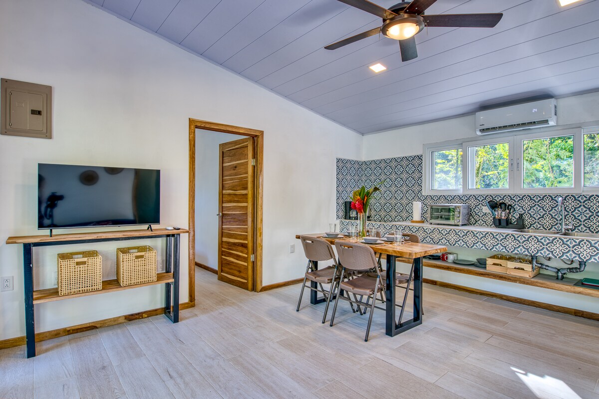 객실에는 퀸사이즈 침대, 에어컨, 파이어스틱이 있는 TV가 있어 개인 계정으로 스트리밍 서비스를 이용할 수 있습니다(케이블 TV 아님). 전용 욕실이 있습니다. 작은 전용 주방에는 간단한 식사를 만들 수 있는 필수 시설이 갖춰져 있습니다. 치키타 해변에 위치하고 있으며, 메인 도로 바로 앞에 있으며, 해변과 슈퍼마켓에서 300m 거리에 있으며, 푸에르토 비에호 중심지에서 4km 거리에 있으며, 푼타 우바에서 2km 거리에 있습니다. 전용 주차장이 있습니다. 자랑스러운 코스타리카 사람들🇨🇷