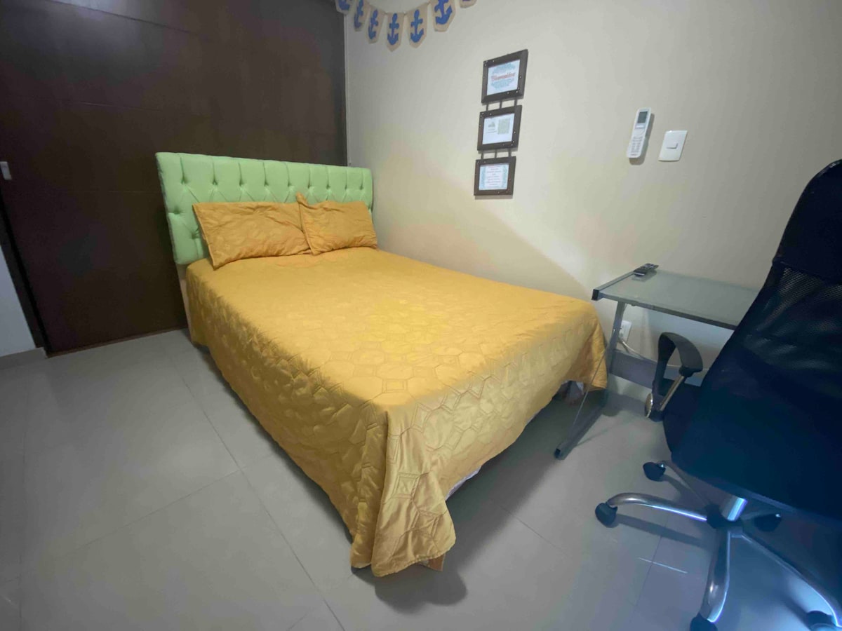 이 아파트는 메인 침실에 에어컨이 설치되어 있습니다. 서비스는 별도로 계약됩니다. 하루에 99.00 페소의 추가 비용. 이 조용하고 우아한 공간에서 휴식을 취하세요. 완전히 새로운 2 개의 방. 4명의 게스트를 위한 넓은 공간. 5번째 옵션 [추가 비용]이 있습니다. 편의 시설 [헬스장, 놀이방, 작업 공간, 영화관]. 훌륭한 위치. 도시 남부에 있습니다. 광장과 슈퍼마켓에서 5분 거리에 있습니다. 즐거운 숙박을 보장합니다.